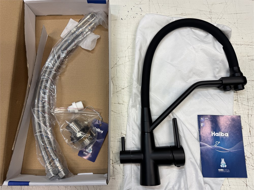 Haiba HB76855-7 Смеситель для кухни с подключением фильтру питьевой воды, гибкий излив, черный
