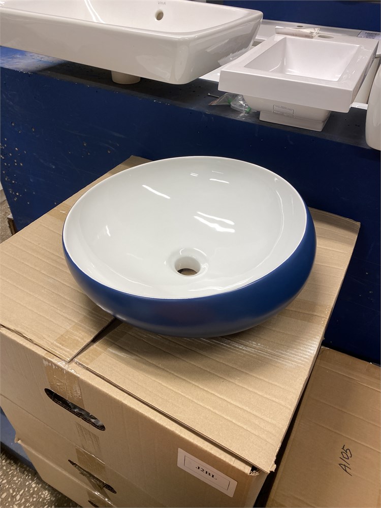 Раковина накладная 41 см бело-синяя